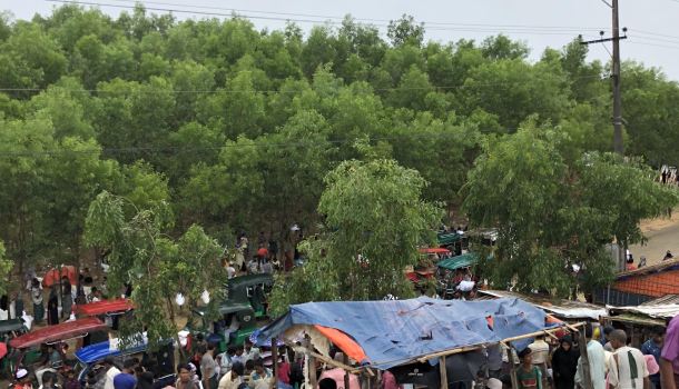 It is hot and muggy, and the sky is full of clouds, plus a steady wind. The trip from Cox’s Bazar to Kutupalong camp to the south takes you south along a beautiful coastal road on the Bay of Bengal before turning inland through narrow and crowded market towns, with traffic becoming ever denser as we approach the camp. My first host is Peter Agnew, an American working for the UN Food and Agricultural Organization, a forester who is excited about a project he has championed. The building of the camp in the aftermath of the forced departure of over 750,000 Rohingya refugees meant the destruction of a vast forest, home to elephants and wildlife, and the building of bamboo tarpaulin shacks built on top of it each other, on hills, ridges, and the banks of streams. The camp is vast, hilly, and almost completed denuded of vegetation. The FAO project accomplishes two things - gives much needed jobs to refugees, and begins a long process of replanting and reforestation on hillsides at risk of collapse from torrential rains. And Peter has another project in mind as well, replacing wood fires with liquid propane - thus saving even more forest, and saving long treks further and further into the jungle for women and children to get firewood.